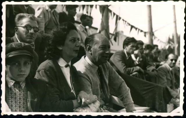 Az 1950-es években készülhetett a kép. Én vagyok rajta és az első uram, Schönbrunn Jenő. Akkor már megvolt a Voita strand, épp valami versenyt néztünk, de már nem tudnám megmondani, hogy mit. Az úszómedence mellett ülünk.