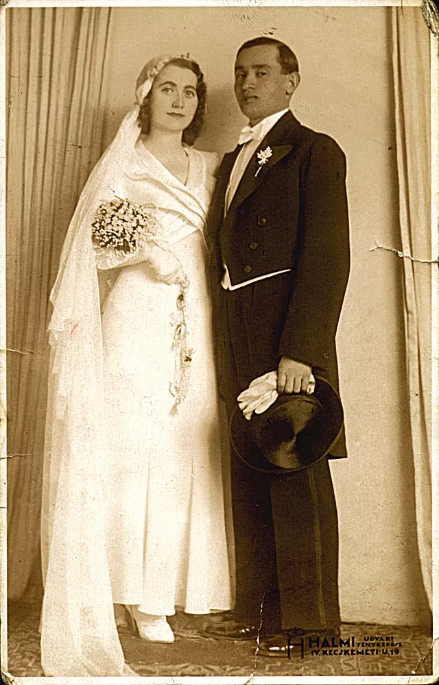 Ez a testvérem, Etel esküvői képe. Nem sokkal én utánam ment férjhez Schneller Józsefhez. Talán 1934-ben vagy 1935-ben. A kép Budapesten készült.
