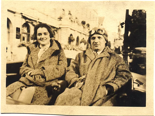 Ezek itt a szülők, jól felöltözve. Nem Magyarországon, hanem valamelyik külföldi útjukon, egy akkori autóban. Ez egy közös utazás volt. Ez a legjobb közös képük.