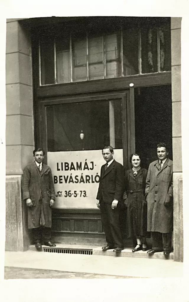 A képen Margit nagynéném látható első férjével és a bolt két alkalmazottjával, 1933-ban.