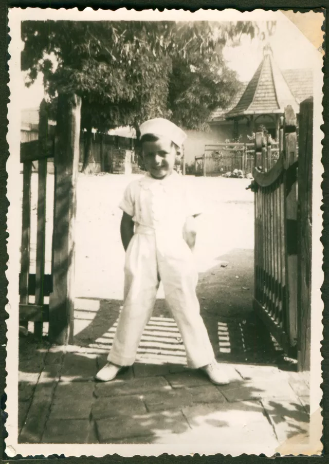 Ez a kép Tövisen készült, beöltöztettek tengerésznek. Négyéves körül lehetettem, tehát úgy 1937-ben volt. Ezt a fényképet anyámék készítették a Kodak fényképezőgéppel.
