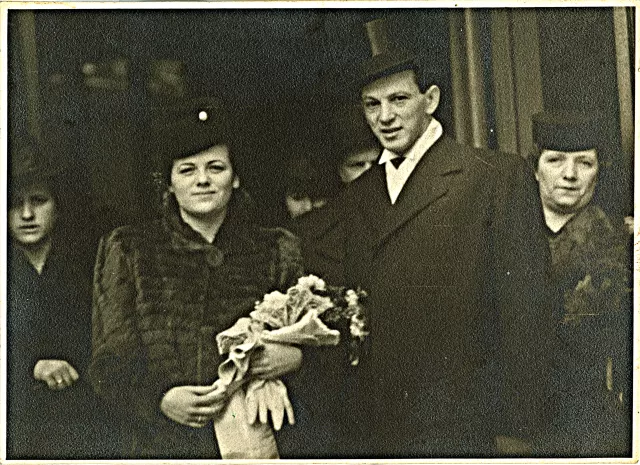 Ez egy nagyon szép kép 1939-ből. A képen Hédi nagynéném Elza nevű lánya látható az első férjével. A vezetékneve Korvin volt, a keresztneve nem jut eszembe. Jobbról balra: Kertész Sándorné (született Schwarcz Hédi), Korvin, Korvinné (született Kertész Elza).
