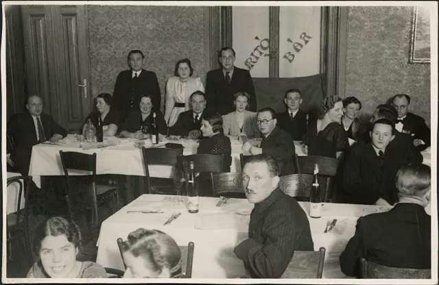 Ez a kép valamikor 1938 után készülhetett, mert ekkor már Feri felesége voltam, és mi 1938-ban házasodtunk össze. A képen látható társaság a kollégáink voltak a Lana Rt. Posztó kis- és nagykereskedésnél. Egyszer kibéreltük ezt az éttermet valahol Zuglóban, és ott tartottunk egy olyan kollegiális összejövetelt.