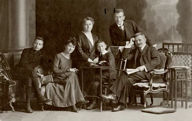 A kép apai nagyszüleim ezüstlakodalmán készült. A fotó jobb szélén ül Szöllős Samu nagyapám, mellette kisfiúként apám, mögöttük pedig nagybátyám, Károly áll. Apám mellett Kráhl Irma nagyanyám áll, mellette Erzsike lányuk, a kép bal szélén pedig Antal fiuk látható.