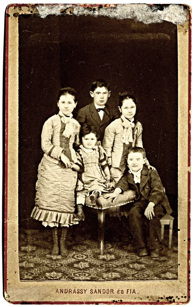 Balról az első az anyai nagyanyám, Török Dezsőné [szül. Glück Jeanette, 1869--1945] tizennégy éves korában. Mellette áll Glück Dezső és Glück Juliska. Jobb oldalon, a kisszéken ülő fiú Izidor, a nagyobb széken pedig Glück Toncsika (Antónia) ül. Nincs rajta a képen nagymamám Irma húga. Ők hatan voltak a Glück testvérek.