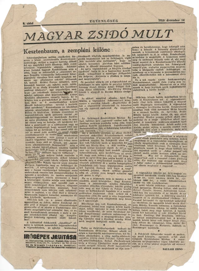 "KESZTENBAUM, A ZEMPLÉNI KÜLÖN