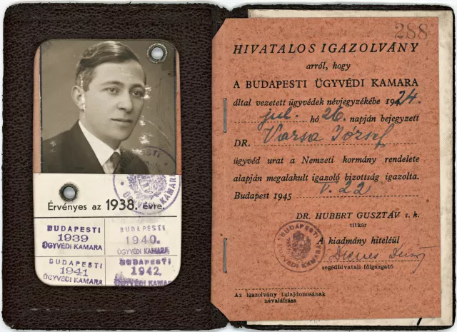 által vezetett ügyvédek névjegyzékébe 1924 jul. hó 26. napján bejegyzett Dr. Varsa József ügyvéd urat a Nemzeti kormány rendelete alapján megalakult igazoló bizottság igazolta.