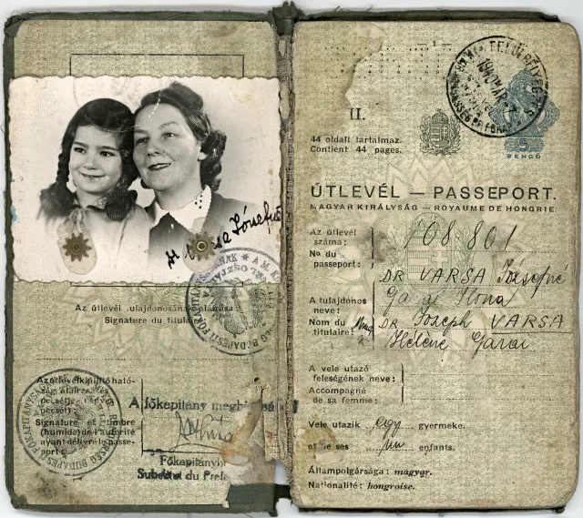 Varsa Józsefné és lánya, Veronika 1940. március 7-én kiállított útlevele, amely csak Jugoszláviára érvényes.