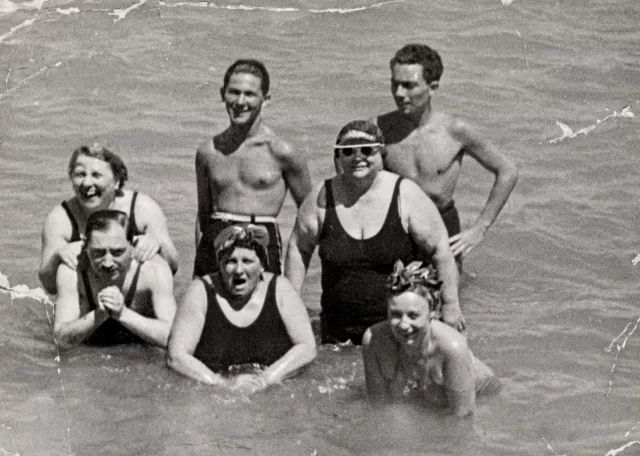 A Veres fényképész családja van a képen, valószínűleg a Balatonnál nyaralnak. Ez egy neves, híres ember volt, a Veres. Nekik a nagynénémék mellett, az Orsó utcában volt a villájuk. A ház ma is megvan. Ők kivételezettek voltak, mert a Horthynak volt az udvari fényképésze a Pali bácsi. És az utolsó napokban, két nappal 1945. január tizennyolcadika előtt, január tizenhatodikán vagy tizenhetedikén lőtték bele őket a Dunába.
