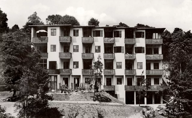 Ez a ház apám, Wágner Sándor építésvezetésével épült a Svábhegyen, 1940 körül [A képen az 1939-ben épült Lomnic társasüdülő látható, amelynek tervezője Szőke Imre, kivitelezője Wágner Sándor volt. -- A szerk.].