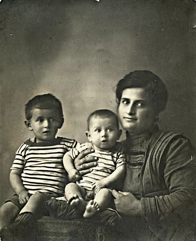 Ez az anyai nagymamám, Weisz Antalné, született Pollák Hermina két gyerekével: a nagyobbik Weisz József, a kisebbik Weisz Ferike, aki 1912-ben született, és 1915-ben meghalt. A kép 1913-ban készült.