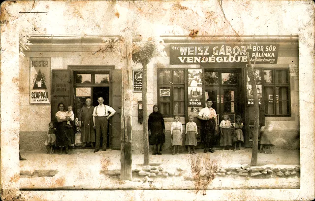 Ez a feleségem nagyszüleinek a vendéglője Fóton. A feleségem nagyapja, Weisz Gábor 1860-ban született Pilisszentkereszten. Az eredeti szakmája bádogos volt. Tudni lehet róla, hogy dolgozott a fóti zsinagógán is, és az építésében is részt vett. Volt egy fűszerüzlete, mellette pedig egy kocsma és étterem. Amikor 1922-ben meghalt, a felesége vette át az üzletet, amit egészen a zsidótörvényekig [lásd: zsidótörvények Magyarországon] vezetett. A nagymama 1943-ban halt meg.
