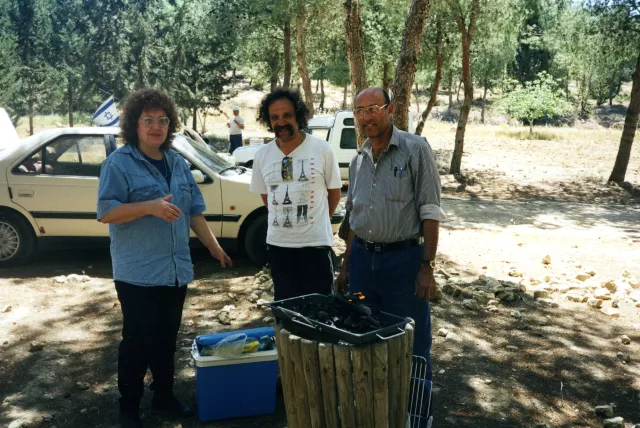 A felvétel Izraelban készült a nyolcvanas évek körül. Jobbról az első az Irma húgom férje, Weisz Pali, mellette áll a fia, Weisz Ferenc. A hölgy egy családi barát, ma már egy öregotthonban él.
