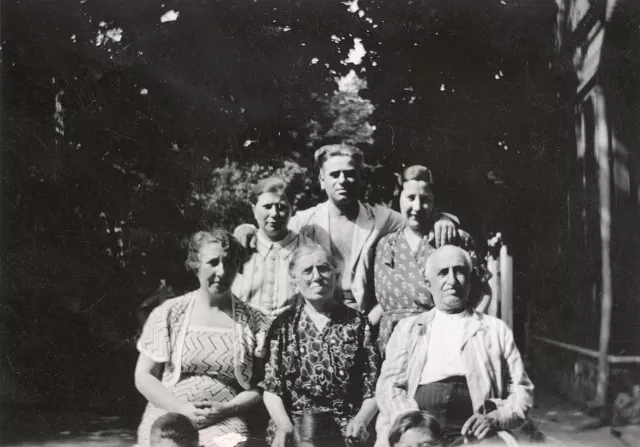 Ezen a képen, ami Budakeszin készült, az anyai nagypapám [Ziegler Gábor] látható a második feleségével, a Szidi nagymamával. Ők ülnek jobbról az első és második helyen, mellettük pedig anyám, Ziegler Aranka. Sári nagynéném áll a nagypapa mögött, majd Sándor nagybátyám, mellette pedig a felesége, Wollner Aranka látható. A jómódban levő Sári nagynéném nyaranta kivett egy szobát vidéken, általában egy kis villában, hogy a nagyszüleim nyaraljanak. A család ott látogatta meg őket, 1939-ben.