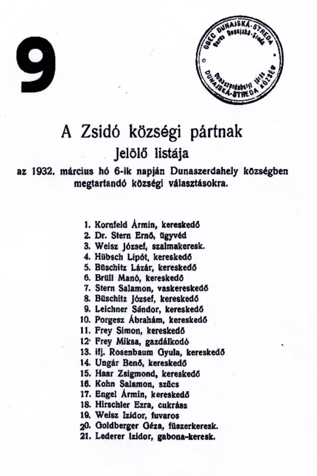 Ez a Zsidó Párt jelölőlistája az 1932-es községi választásokra.