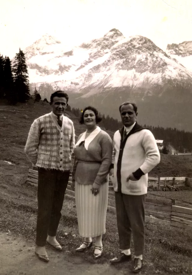 From left to right: my father's friend, whose name I don't know, my mother Bertha Jafet and my father Rafail Jafet, on vacation in Switzerland in 1924.
