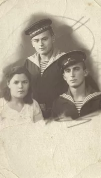 In 1939 my brother finished secondary school. He was going to enter the Philology Faculty at the university. However, my brother and his classmate Mikhail Shichtman were requested to come to the military registry office where they were offered to go to the Navy College. This was the so-called Voroshylov admission. For the sake of their future career they couldn't refuse this offer. They both entered the Higher Navy College in Sevastopol and finished 2 years before 1941 when the war began. My brother bought me a knitted woolen shawl from his first stipend. I still have it. Two or three days before the war started my brother's training boat stopped in Odessa and we managed to see him. He came home for the last time in the evening of 21 June.