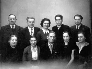 This is a picture of my family. From left to right, lower row: the wife of my father's brother Yankel, my older sister Haya, Yankel, my younger sister Sheiva and my wife Dora. Upper row: a distant relative, Haya's husband, Yankel's daughter and son and I, Boris Slobodianskiy. The photo was taken in Chernovtsy in 1961 when Haya was visiting us.