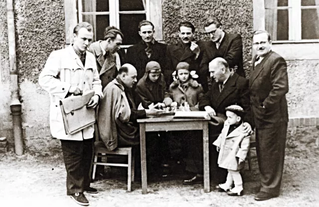 This is me (second from left) playing chess with a friend. I don’t remember any names of the people in this photo. The photo was taken in Jelenia Gora in 1946.