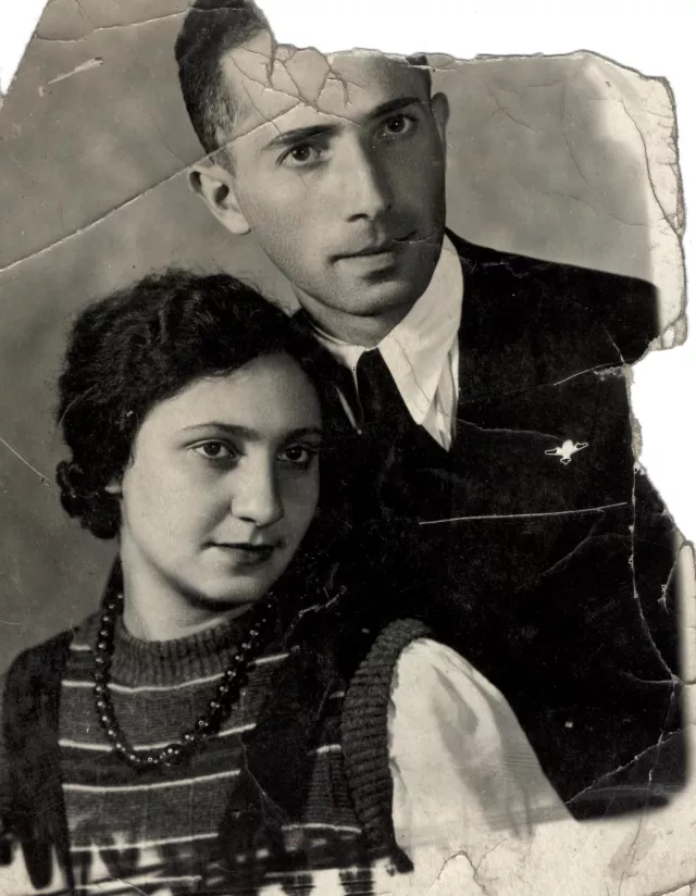 My sister Maria and her husband Yakov Sogolovsky. The photo was made in Kiev in 1941 right before the war (in May) on their wedding day. The photo was sent to their sister Yelizaveta to the front on September 30, 1941.