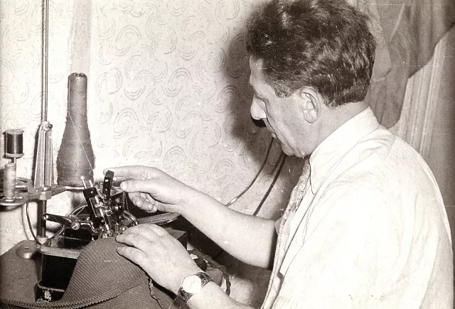 This is me, at home, working. I am repairing the overlock machine. The photo was taken in my apartment in Lodz in the 1950s by my son.