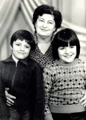 This is me with my grandchildren Mikhail (left) and Yekaterina (right). We had this photo taken, when I came to visit my daughter and grandchildren in Uzhgorod. I have it on the wall at my home. This photo was taken in Uzhgorod in 1986.